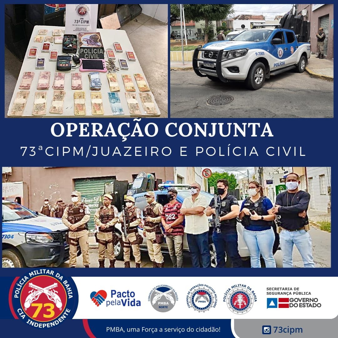 Policiais militares da 73ª Companhia Independente de Polícia Militar e policiais civis da 17 COORPIN, numa ação conjunta, cumpriram mandados de busca e apreensão em dois pontos, próximos à Praça do Boi, centro de Juazeiro/BA, onde se praticavam jogos de azar.