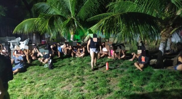 Chegando ao local citado, foi constatada a veracidade dos fatos, sendo encontradas mais de 100 pessoas consumindo bebidas alcoólicas e fazendo uso de alguns entorpecentes, sendo conduzidos dois indivíduos por organizarem o evento.