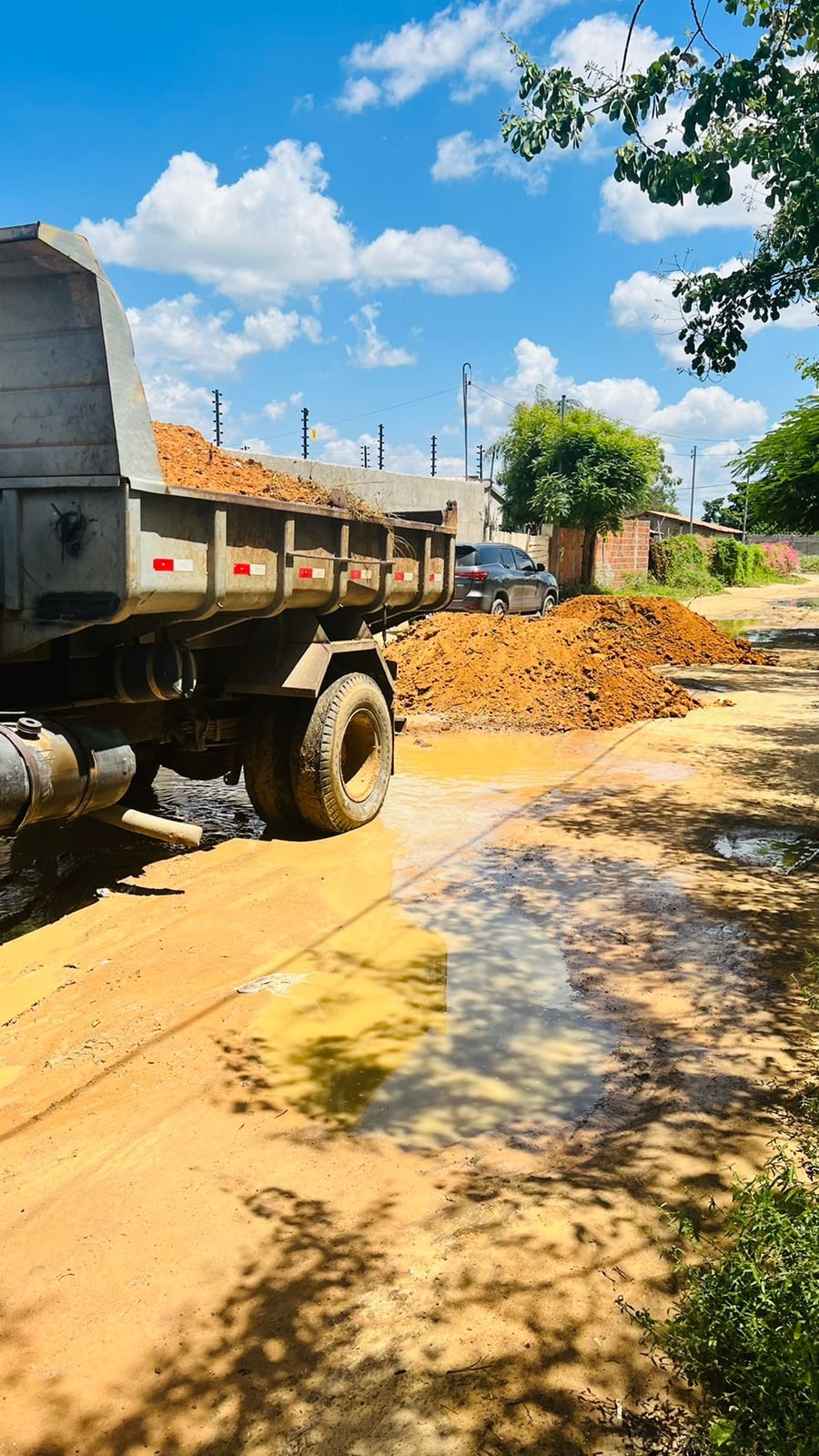 “Aqui no bairro Antônio conselheiro os moradores estão colocando caçambas para cobrir os esgotos, lamaçal e buracos por conta própria. Já gastei quatro caçambas, cada uma a R$150, além de pagar pessoas para espalhar na rua, porque os carros não podem trafegar na avenida que chega a atolar, pois não tem pavimentação.”, relatou Oliveira.