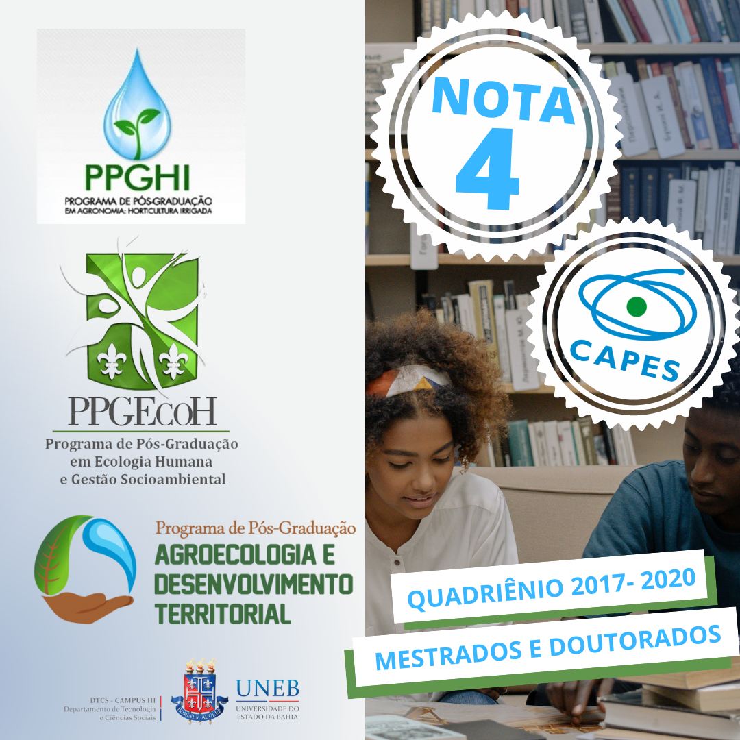 Os Programas de Pós-graduação stricto sensu do Departamento de Tecnologia e Ciências Sociais (DTCS), da Universidade do Estado da Bahia (UNEB), em Juazeiro, receberam nota quatro na última avaliação da Coordenação de Aperfeiçoamento de Pessoal de Nível Superior (CAPES), divulgada neste mês de setembro. A avaliação teve quesitos relacionados à estrutura física e pedagógica dos programas, formação, produção de docentes e discentes e o impacto na sociedade entre outros aspectos acadêmicos. Este resultado compreende o quadriênio 2017-2020 dos cursos de mestrados e doutorado no país.