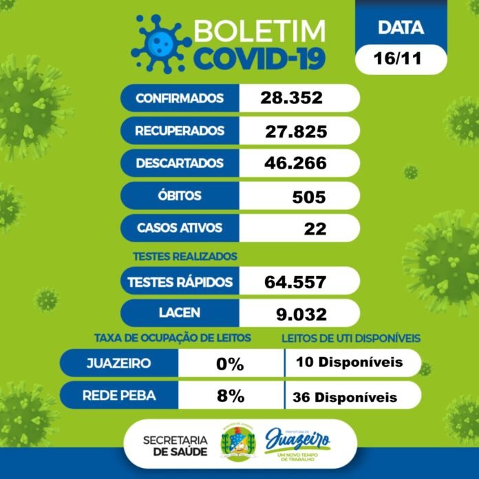 De acordo com o levantamento, 28.352 moradores foram infectados desde o início da pandemia na cidade, dos quais 27.825 já estão recuperados. Os casos descartados somam 46.266. Juazeiro tem 22 casos ativos do novo coronavírus.