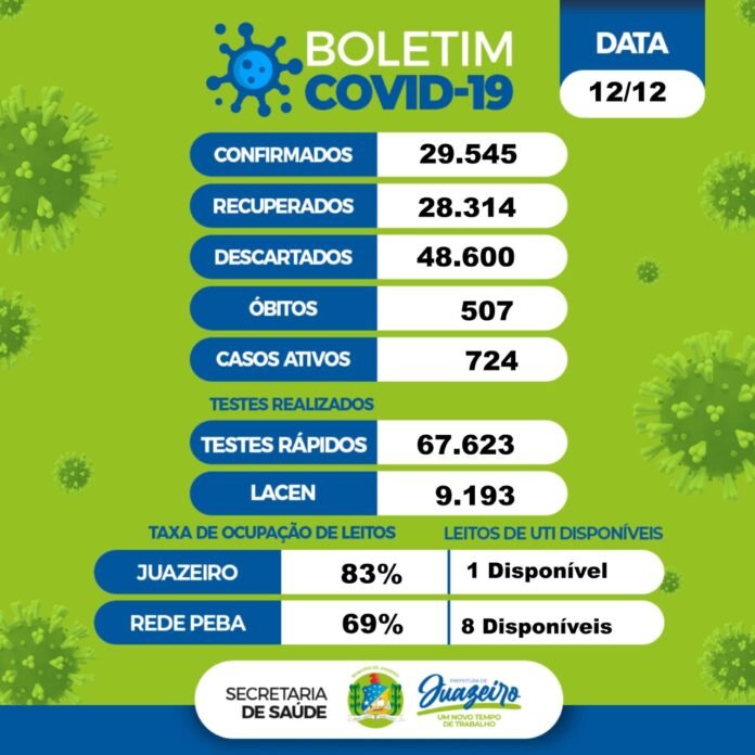 De acordo com o levantamento, 29.545 moradores foram infectados desde o início da pandemia na cidade, dos quais 28.314 já estão recuperados. Os casos descartados somam 48.600. Juazeiro tem 724 casos ativos do novo coronavírus.