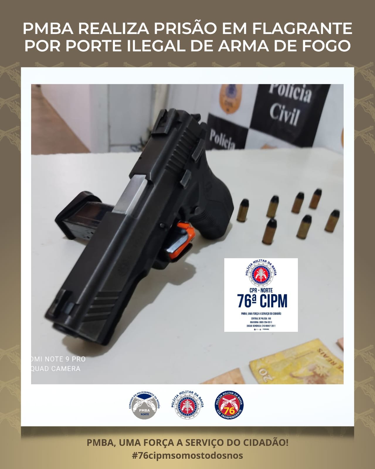 A Polícia Militar da Bahia, através da 76ª Companhia Independente de Polícia Militar (CIPM), prendeu na tarde desta terça-feira (27), no Residencial Dr. Humberto III, na cidade de Juazeiro, dois indivíduos por porte ilegal de arma de fogo. A Guarnição Policial Militar foi informada por populares que haviam duas pessoas praticando delitos na região.