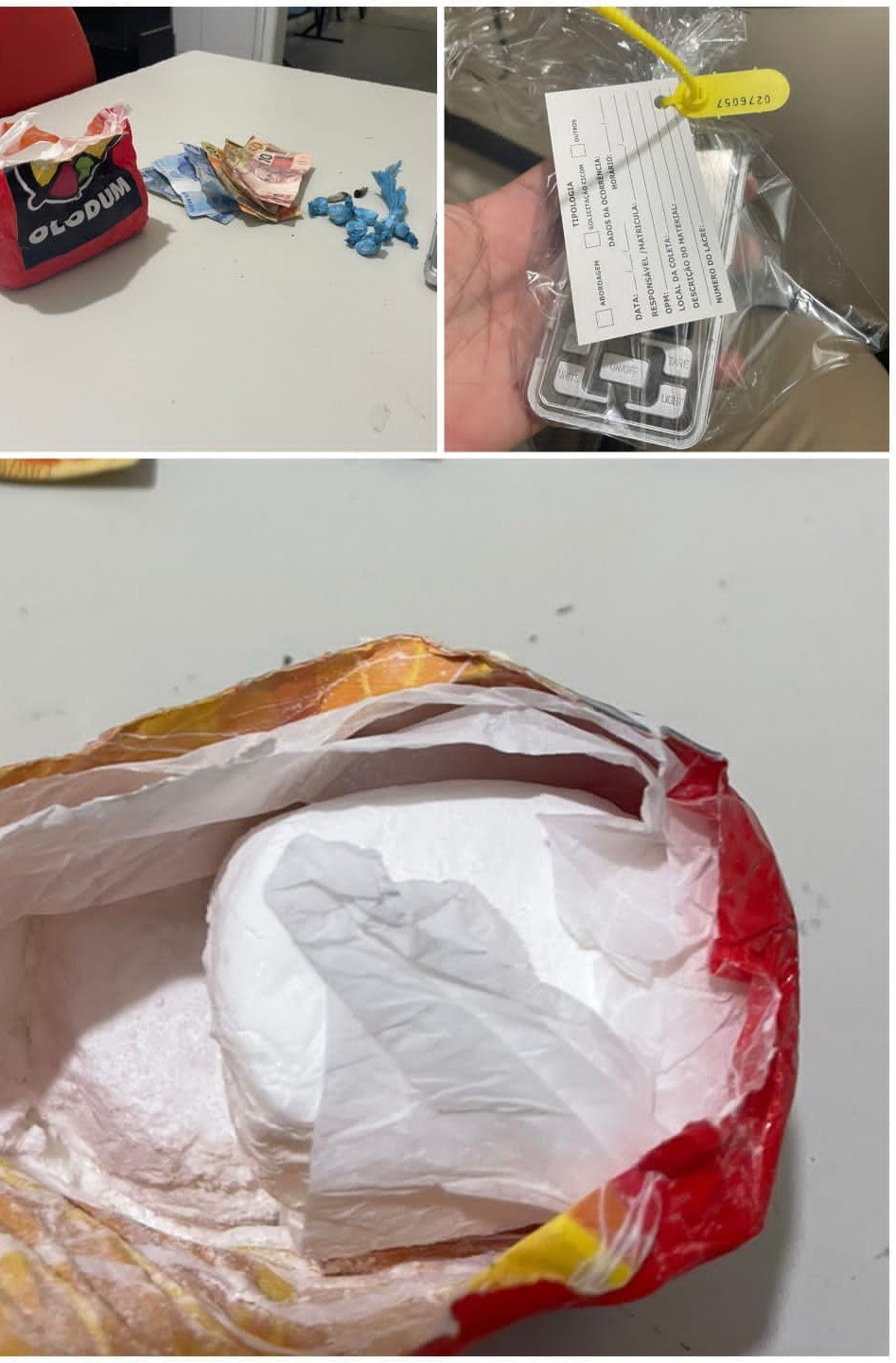 Durante a intensificação de patrulhamento na região da rodovia do Salitre, as guarnições receberam informações de indivíduos traficando drogas na imediações. Durante as buscas, a equipe visualizou um suspeito, que tentou fugir, mas foi alcançado e abordado. Após a busca pessoal, foram encontrados com ele aproximadamente 400g, além de oito embalagens de cocaína e uma balança de precisão.