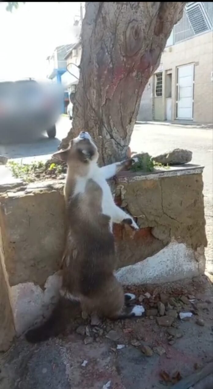 Moradores da rua se depararam com uma cena que choca. Um gato foi enforcado por um criminoso, em uma árvore que fica no canteiro central da via.