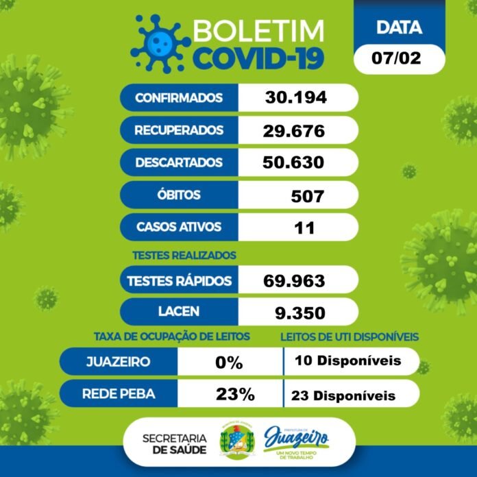 De acordo com o levantamento, 30.194 moradores foram infectados desde o início da pandemia na cidade, dos quais 29.676 já estão recuperados. Os casos descartados somam 50.630. Juazeiro tem 11 casos ativos do novo coronavírus.