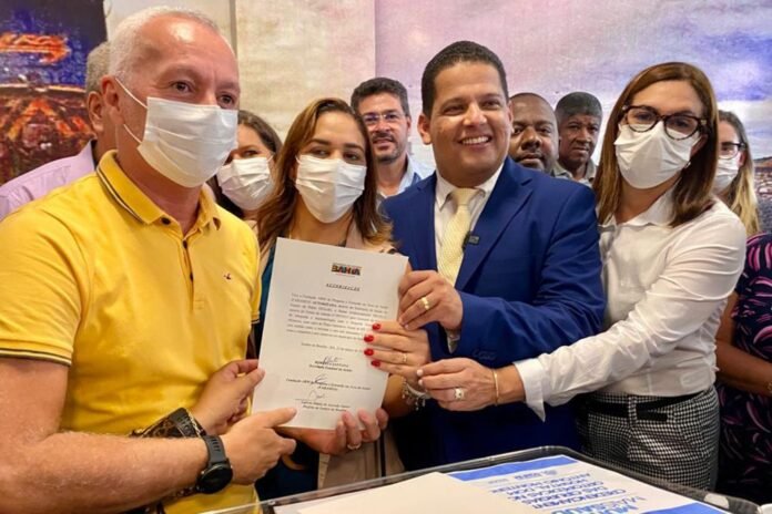 O deputado estadual Bobô, o prefeito do município, Laércio Junior, e outros seis prefeitos da região estiveram presentes no ato da assinatura do novo contrato.