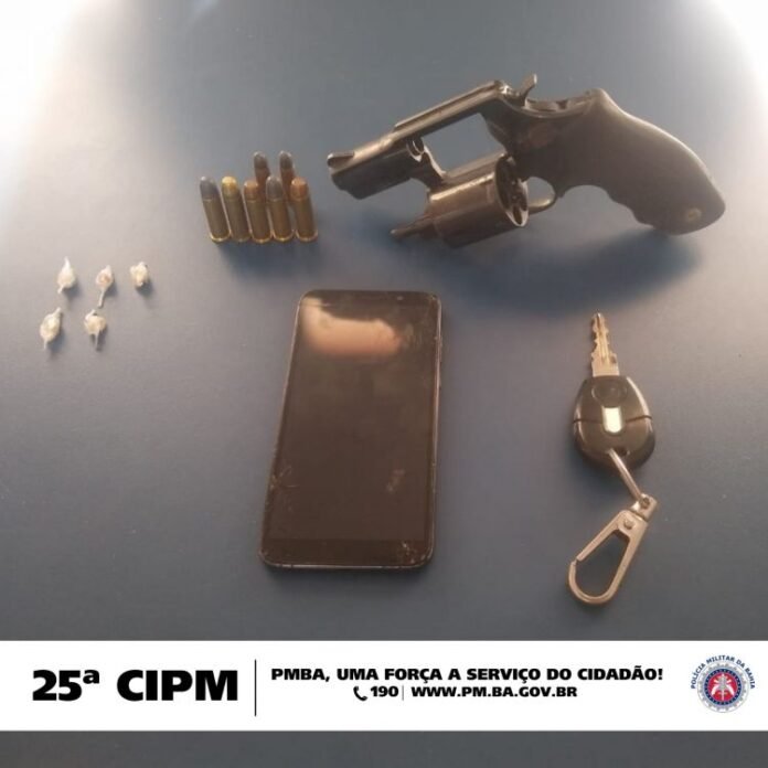 Como o detido, foram apreendidos 01 (um) Revólver marca Taurus calibre .38 N°QC60982;