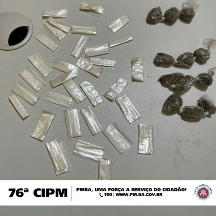 Com os dois acusados, foram apreendidas 33 trouxas de cocaína e 12 trouxas de maconha.