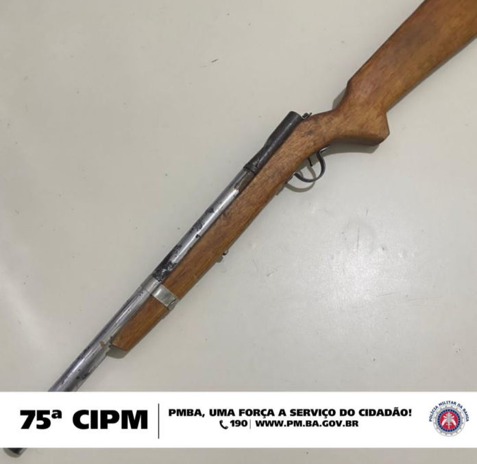Policiais Militares da 75ª CIPM apreenderam espingarda de fabricação caseira calibre .12, na madrugada desta segunda (14) em Juazeiro – BA.