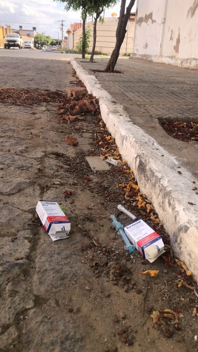 Moradores do bairro Cajueiro, em Juazeiro, flagraram várias seringas, agulhas e embalagens de anabolizantes na Travessa Um, no loteamento Morada do Rio. De acordo com eles, a prática tem sido recorrente.