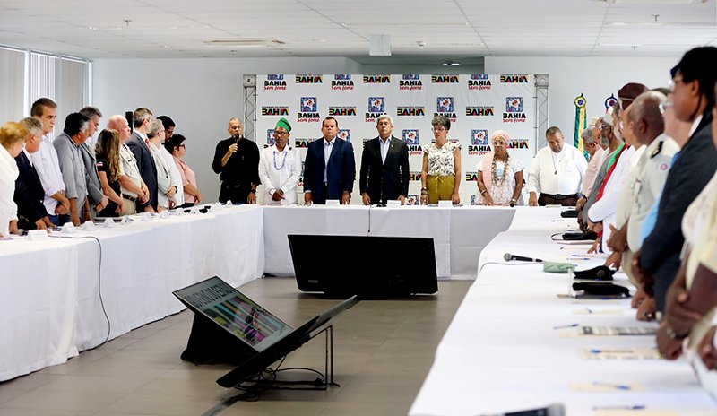 Lideranças religiosas de candomblé, umbanda, espiritismo, muçulmanos e israelitas foram alguns dos que estiveram com o governador Jerônimo Rodriguesna quarta-feira (24), no Centro Administrativo, em Salvador, para discutir a criação da Delegacia Especializada de Combate à Intolerância Religiosa (Decradi) com secretários de estado e representantes da Segurança Pública da Bahia (SSP-BA), entre outros temas.