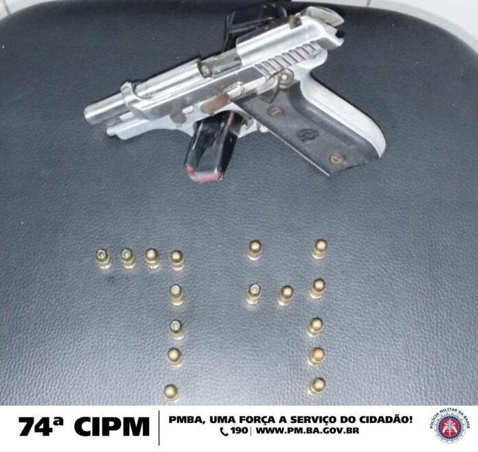 Durante a abordagem, uma pistola Calibre .380 foi encontrada com um dos homens.