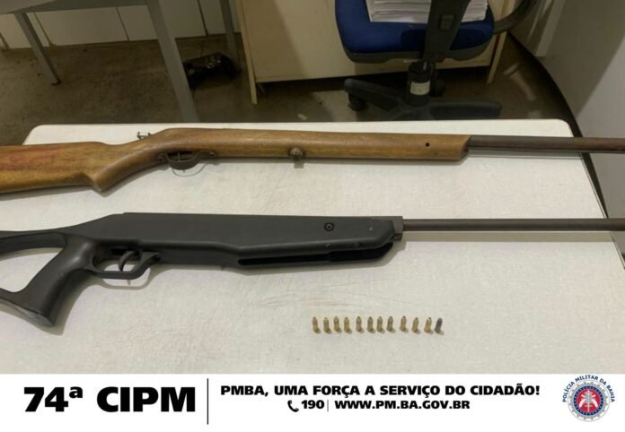 Durante busca na casa do suspeito, os policiais encontraram um rifle calibre.22,12 munições do mesmo calibre e uma arma de fabricação caseira.