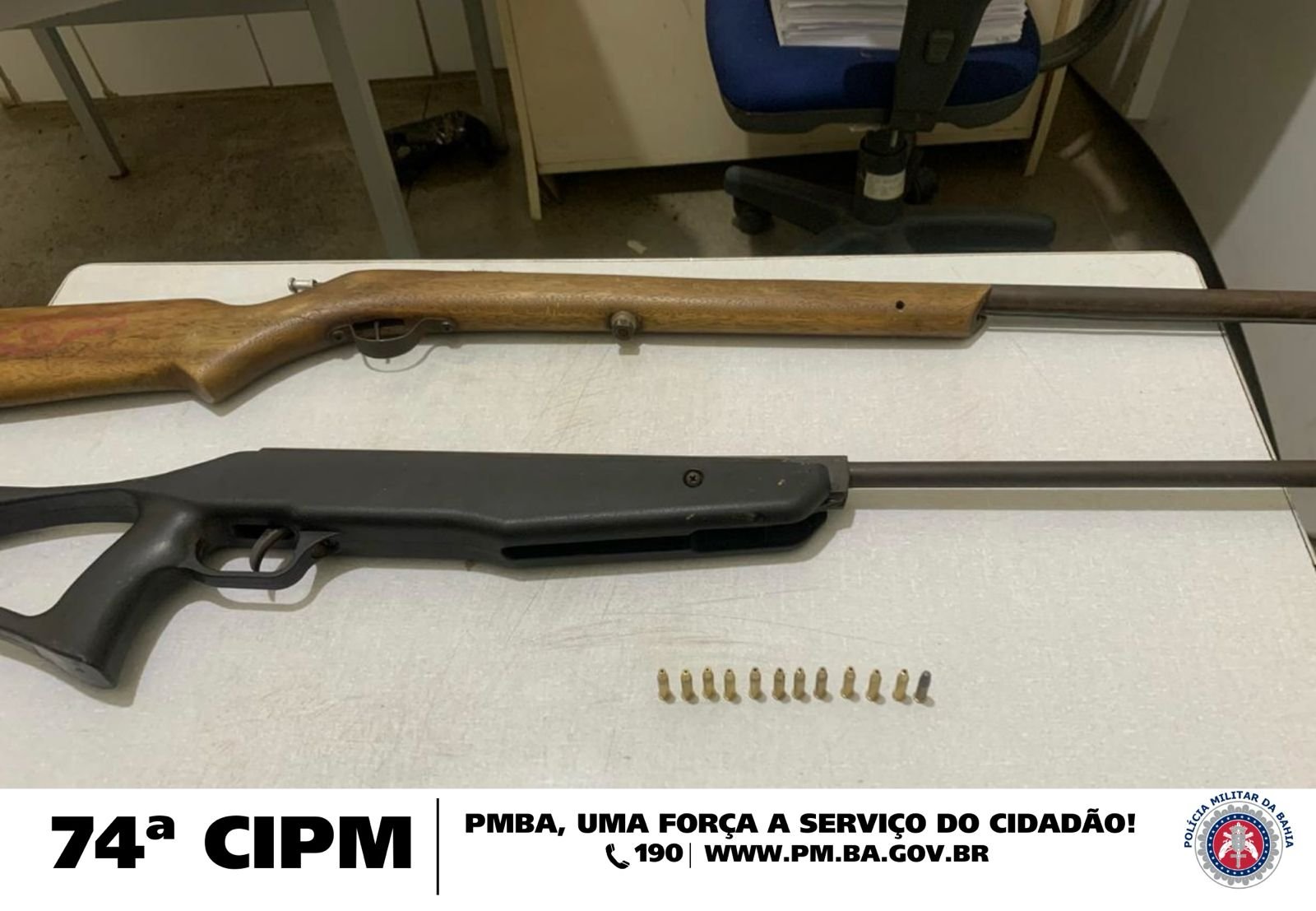 Policiais da 74ªCIPM apreenderam, neste domingo (25) arma de fogo e munição na comunidade de Jatobá, distrito de Maniçoba, em Juazeiro. O dono da arma, acusado de agredir a companheira conseguiu fugir.