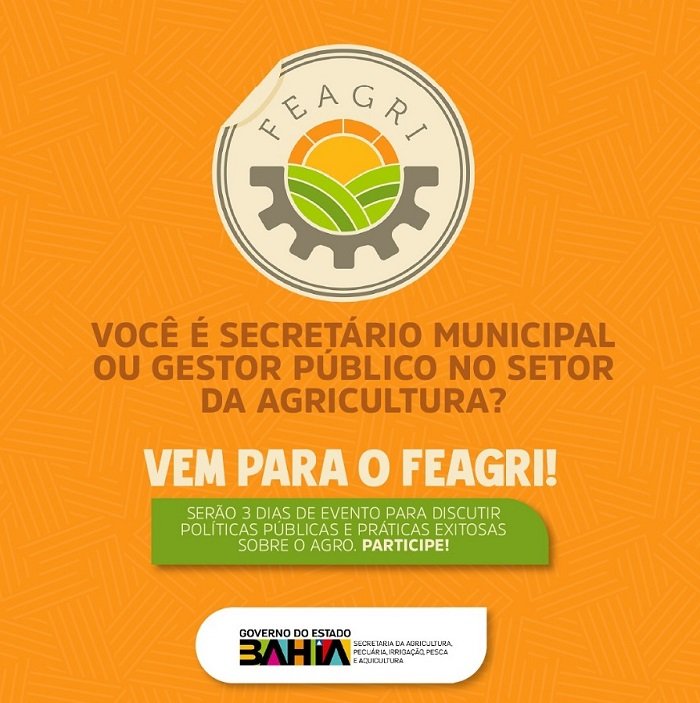 A partir da próxima terça-feira (21), começa o 4º Encontro do Fórum Estadual de Gestores da Agricultura, Pecuária, Irrigação, Pesca e Aquicultura da Bahia (Feagri).