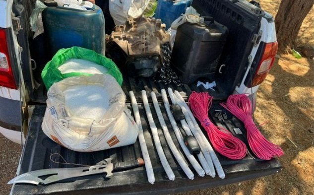 A ação ocorreu nesta segunda-feira (8) durante abordagem ao veículo que trafegava pela rodovia. Nas buscas, foram localizados 7 bananas de dinamite, 100 metros de cordel detonante, 16 espoletas, 21,4 kg do explosivo Anfo, além de dois rádios comunicadores e uma porção de crack.