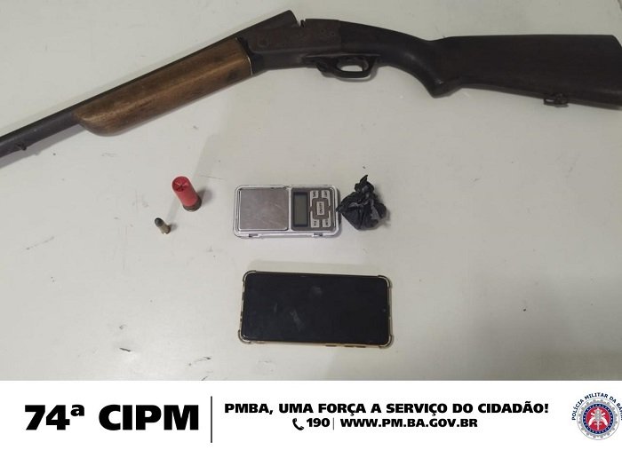 Nesta sexta-feira (13), policiais da 74ª Companhia Independente de Polícia Militar, em parceria com a 76ª CIPM, prenderam um acusado por posse de arma de fogo, munições e drogas, no povoado de Rodeadouro, Juazeiro.