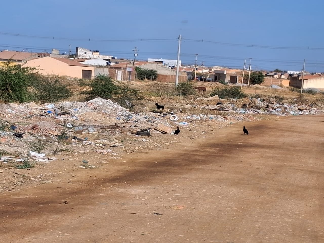 “Lá tem umas algarobas que estão crescidas e estão jogando muito lixo lá próximo. Vários carros passam e jogam lixo, caçambas jogando entulho. Está um odor terrível, animal morto, urubu circulando por lá. Não tem quem faça nada por nós. Nem para recolher o lixo, nem para passar a máquina para tirar as algarobas lá, para derrubar as algarobas. A gente está passando por uma situação bem complicada. Um odor insuportável”, declara a moradora.