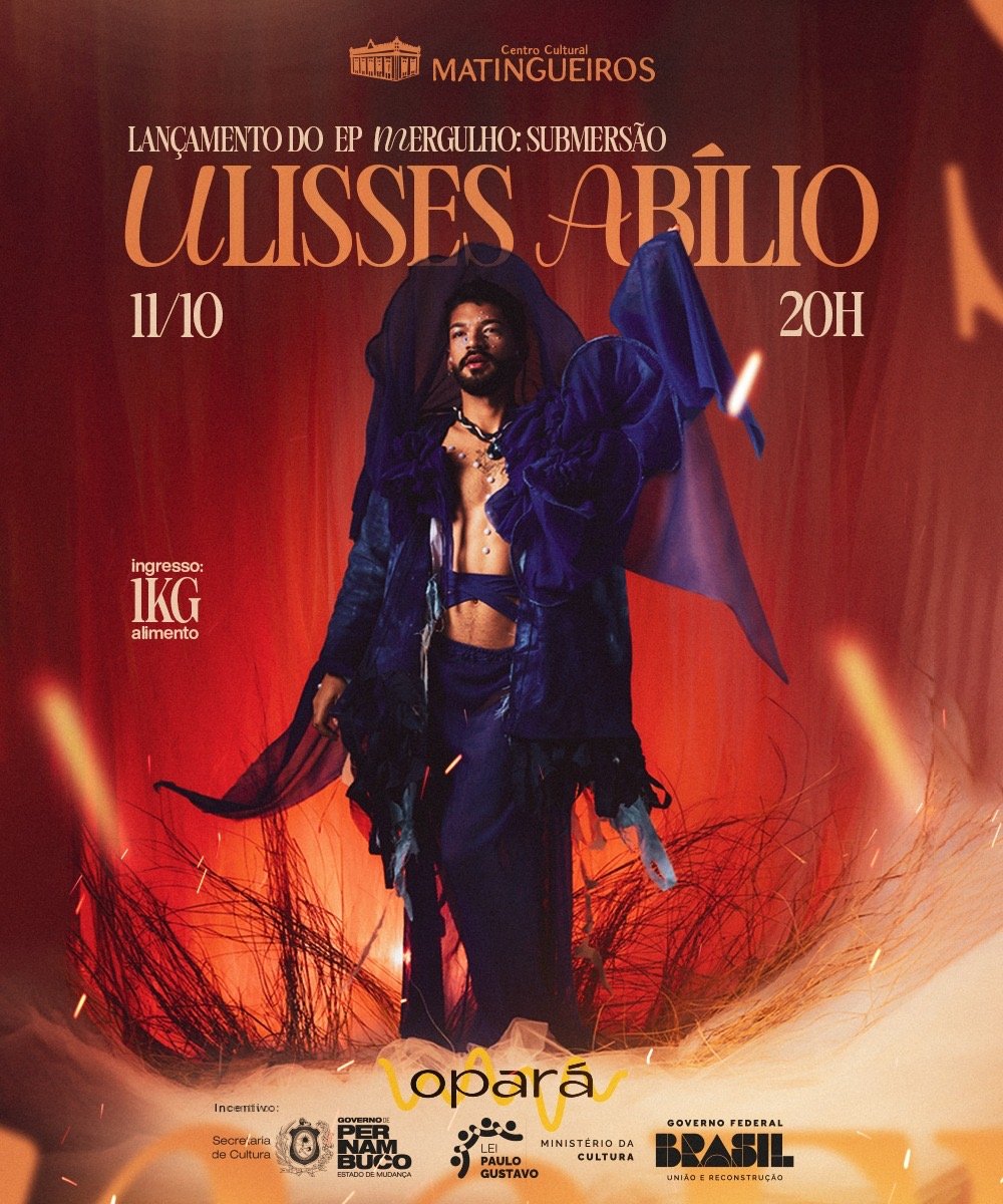 O cantor e compositor pernambucano Ulisses Abílio lança no dia 11 de Outubro (sexta-feira) o seu segundo EP, em Petrolina-PE. O show musical será realizado no Centro Cultural Matingueiros, Centro da cidade, a partir das 20h. A entrada é 1kg de alimento não perecível. As doações serão destinadas a famílias em situação de vulnerabilidade social.