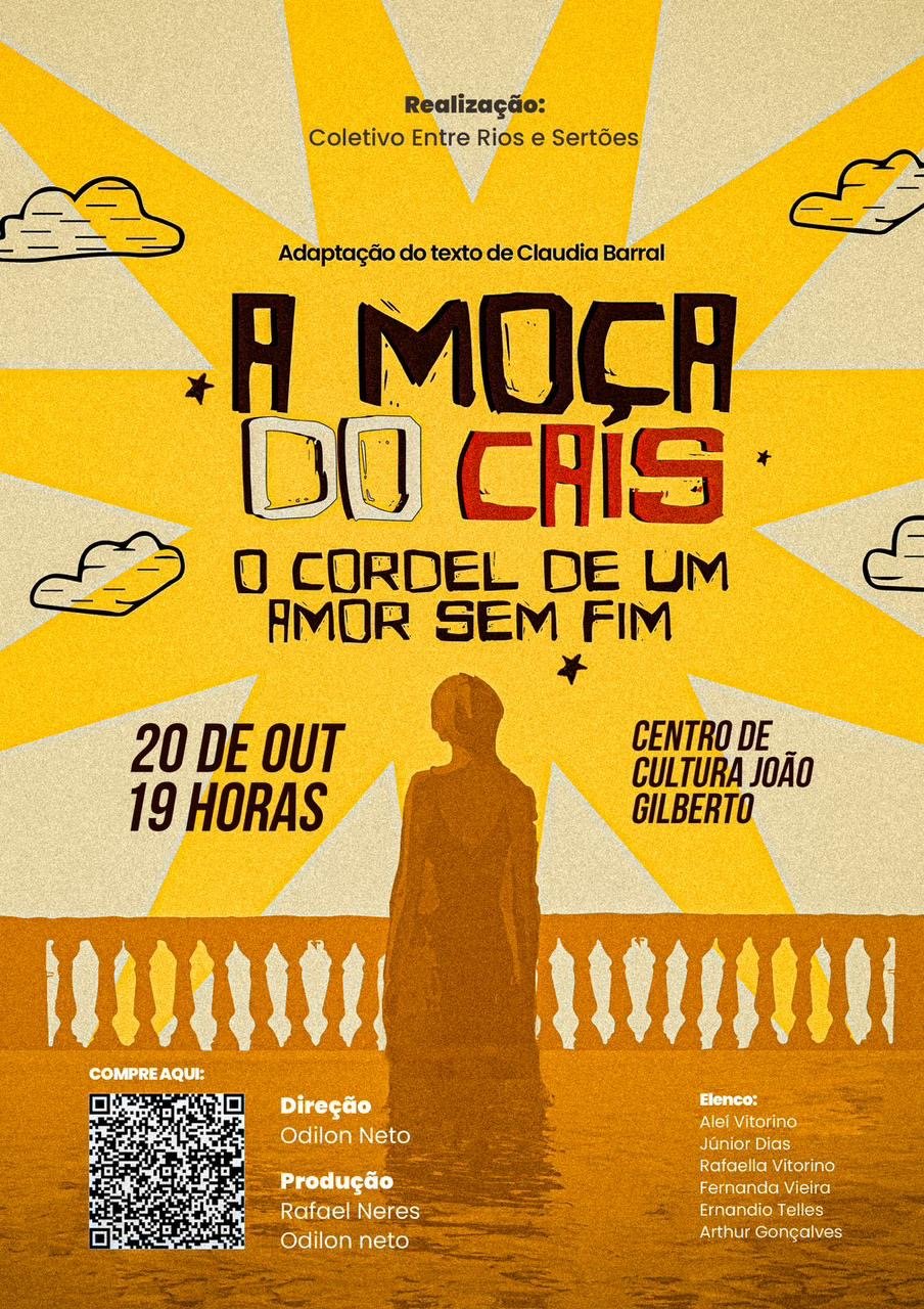 “A Moça do Cais: O Cordel de um amor sem fim” será apresentado neste domingo (20), no Centro de Cultura João Gilberto, em Juazeiro. A apresentação aborda temas contemporâneos e urgentes que são discutidos num viés poético, autêntico e aparentemente ingênuo.