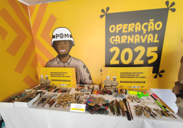 Somente no 5º dia de Carnaval em Salvador, a Polícia Militar da Bahia (PM-BA) reteve 787 objetos proibidos retidos nos 47 Portais de Abordagem espalhados nos circuitos oficiais da capital baiana. No acumulado dos cinco dias de festa, já são 4.054 objetos considerados de risco impedidos de entrar no perímetro da folia.