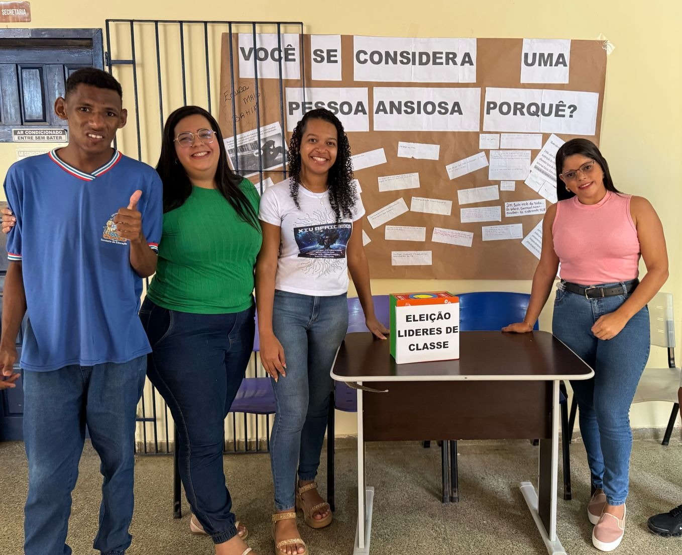 A colega Ana Mirelli dos Santos Gomes, 17, também recém-eleita líder de turma, conta que está animada com a oportunidade. “Como líder de classe, minha expectativa é trabalhar com a colaboração dos meus colegas e professores para criarmos um ambiente escolar mais harmonioso e produtivo, bem como organizarmos eventos e atividades que promovam a integração e o bem-estar dos alunos. Além disso, quero trabalhar para resolver problemas e desafios que afetem a classe, ouvindo as necessidades e sugestões dos meus colegas”, revela.