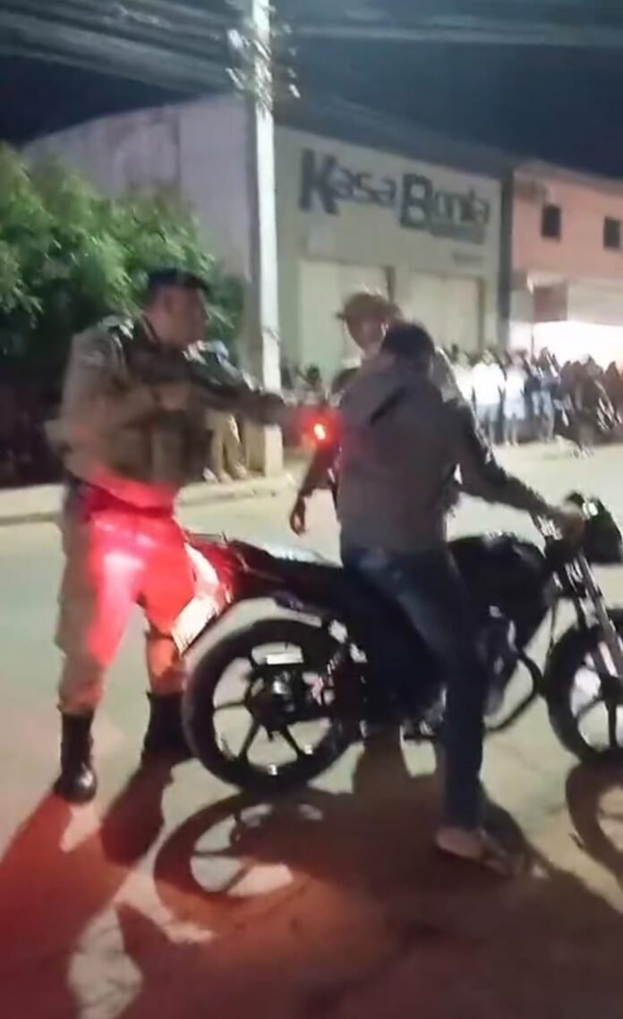 Leitores do Portal Preto no Branco enviaram à nossa redação, neste sábado (19), um vídeo em que aparecem dois policiais militares abordando de forma violenta um motociclista. A ação ocorreu durante a Alvorada da tradicional Festa dos Colonos de Maniçoba, em Juazeiro, Norte da Bahia.