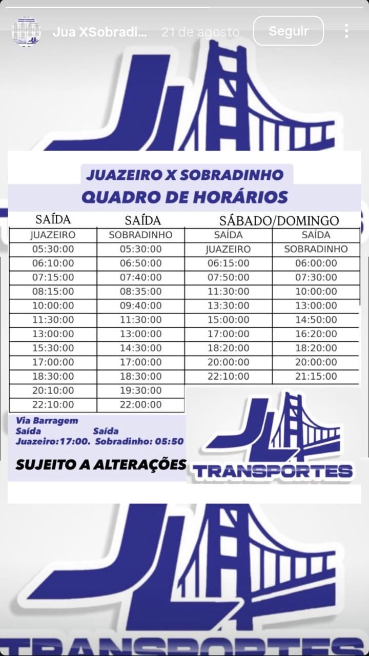 Um usuário do transporte público de Sobradinho, no Norte da Bahia, entrou em contato com o Portal Preto no Branco para relatar sua insatisfação com o serviço prestado pela empresa que atualmente esta responsável pela linha intermunicipal que liga Sobradinho a Juazeiro. Segundo ele, a JL, que assumiu a operação após a saída da Joafra, tem realizado mudanças de rota sem aviso prévio aos passageiros.