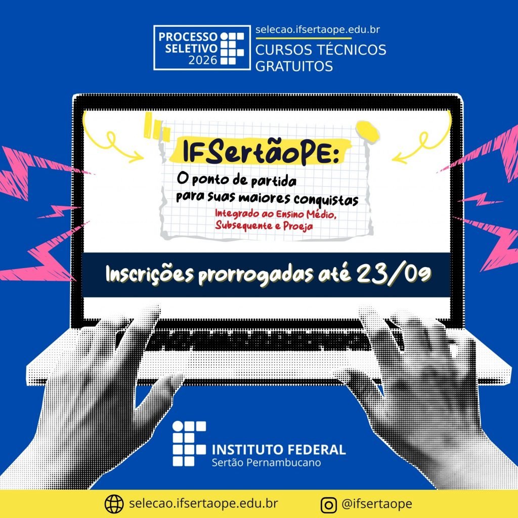 Ao todo, são oferecidas 1.736 vagas distribuídas em sete campi (Floresta, Ouricuri, Petrolina, Petrolina Zona Rural, Salgueiro, Santa Maria da Boa Vista e Serra Talhada). O cadastro dos candidatos interessados deve ser realizado pelo Portal do Candidato e o processo é todo gratuito. A seleção será realizada pela análise do histórico escolar (para os cursos integrados ao Ensino Médio, o histórico do Ensino Fundamental; e para os cursos pós-médio, o histórico do Ensino Médio).