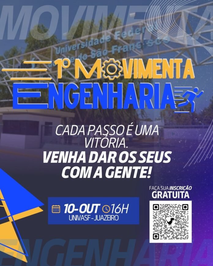 Em comemoração ao Dia Mundial da Saúde MentaI, a Universidade do Vale do São Francisco (Univasf) promoverá o I Movimenta Engenharia. O evento realizará caminhada e corrida com percurso de três quilômetros para incentivar a comunidade acadêmica a praticar exercício físico como forma de cuidado para a saúde física e mental. O Movimenta Engenharia irá acontecer no dia 10 de outubro, às 16h, no Campus Juazeiro. As inscrições podem ser feitas até o dia 30 de setembro.