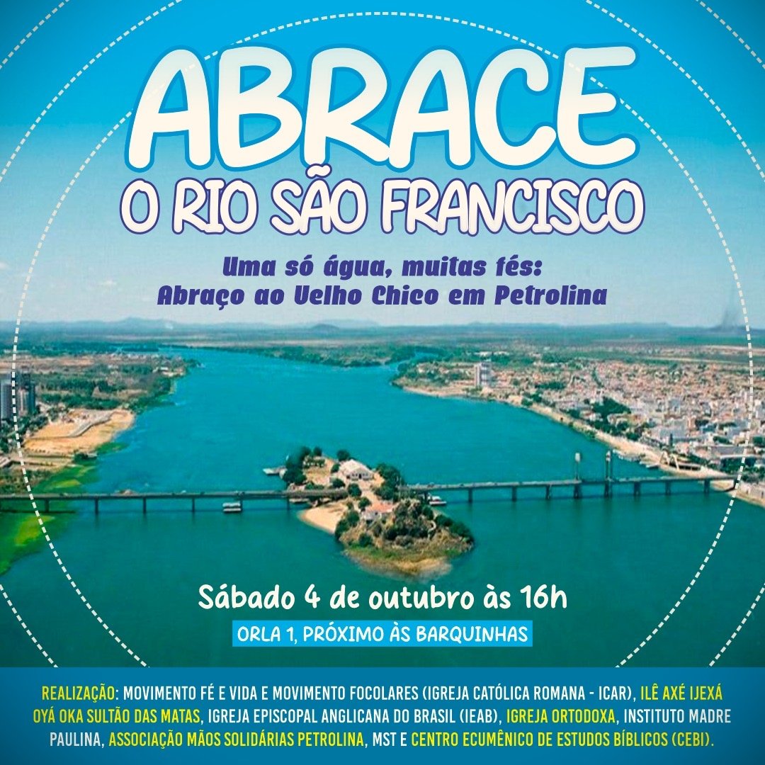 No sábado, 04 de outubro, Dia de São Francisco, às 16h, coletivos religiosos e populares realizam o Ato Interfé de Abraço ao Velho Chico, na Orla 1 de Petrolina (PE), próximo às barquinhas.