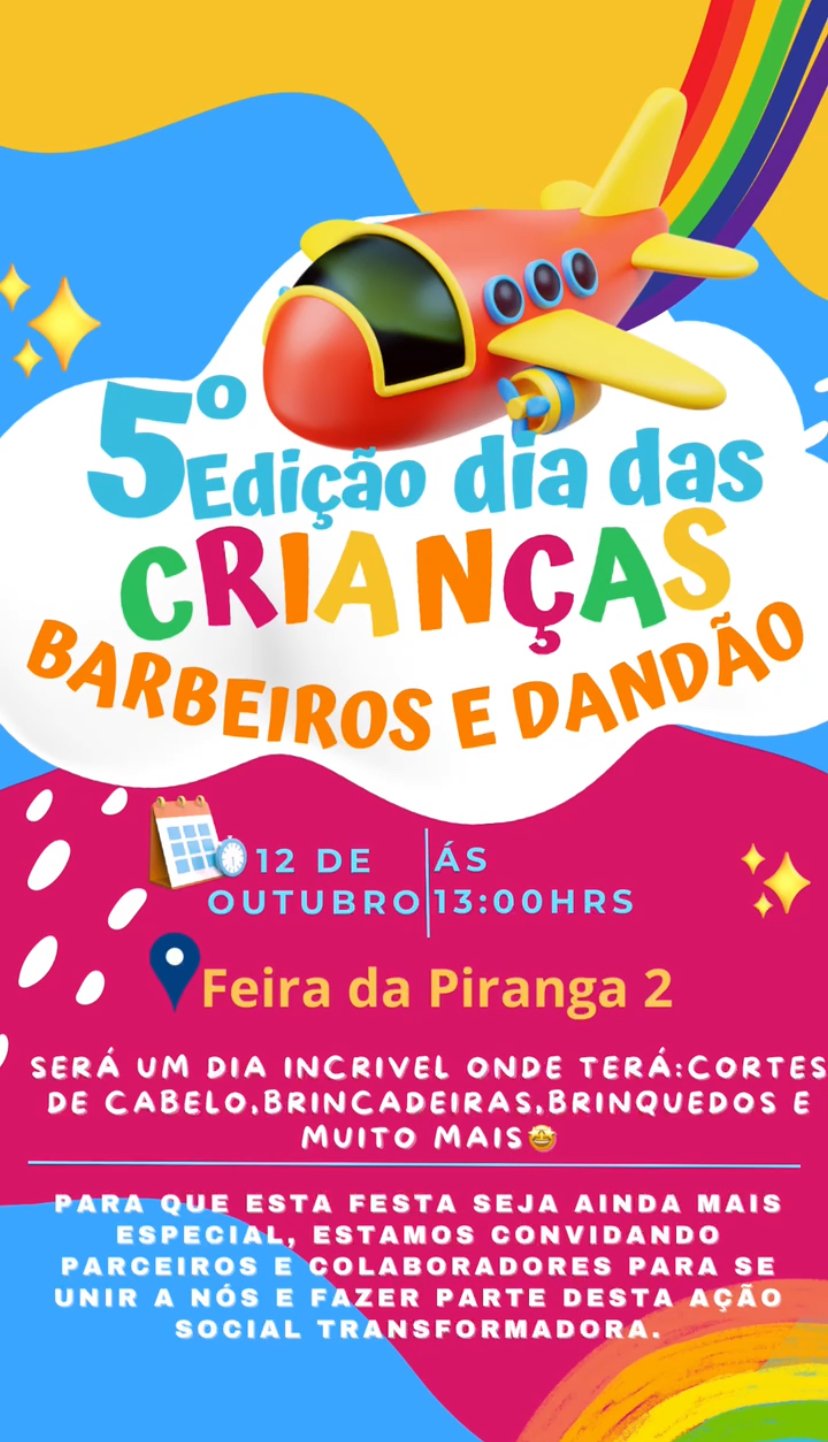 Neste domingo (12), o bairro Piranga 2, em Juazeiro, recebe a 5ª edição do projeto do Dia das Crianças – Barbeiros e Dandão, realizado na feira do bairro, a partir das 13h. A ação é uma iniciativa de dezenas de voluntários que oferecem uma tarde de atividades, serviços gratuitos e muita diversão para as crianças.