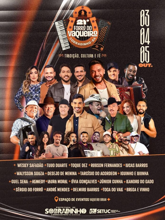 Sobradinho já conta os dias para viver a maior celebração de sua história. Nos dias 3, 4 e 5 de outubro, o 21º Forró do Vaqueiro vai transformar o Pátio de Eventos Vaqueiro Bryan em um palco de cultura, fé, tradição. O evento que traz como tema “A Festa que faz história, cada vez mais Forte!”, vai reunir grandes atrações musicais.