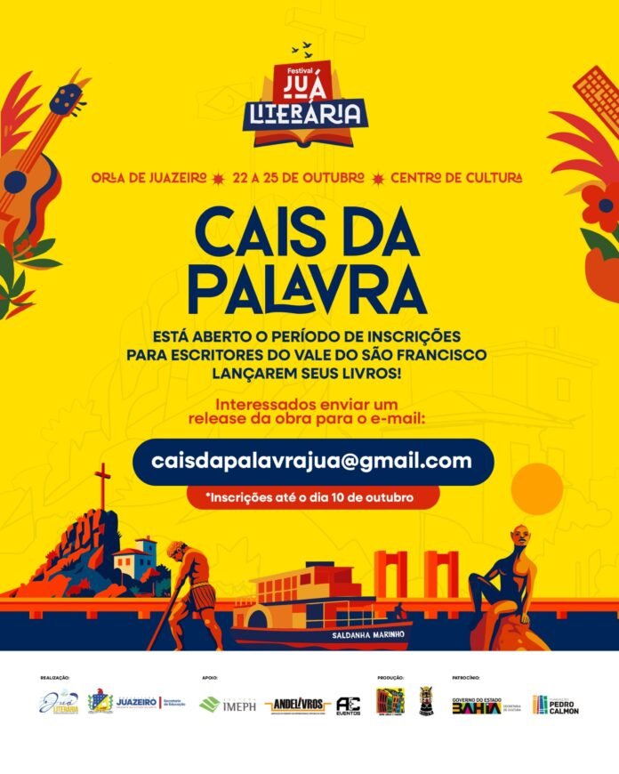 De 22 a 25 de outubro, Juazeiro será palco de um dos maiores encontros de arte, cultura e literatura do interior nordestino: a Juá Literária. O festival, realizado pela Prefeitura de Juazeiro, por meio da Secretaria de Educação (Seduc), vai reunir grandes nomes da música, da poesia, da dança, do teatro e da literatura nacional em uma programação gratuita, pensada para todas as idades. Durante quatro dias, a cidade será transformada em uma verdadeira capital da leitura, com mais de 80 atrações espalhadas pela Orla II, Centro de Cultura João Gilberto, distritos e até o Rio São Francisco.
