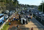 Um caminhão carregado com quase 14 toneladas de frutas, que havia saído de Juazeiro, no norte da Bahia, virou na BR-324, no sentido Salvador....