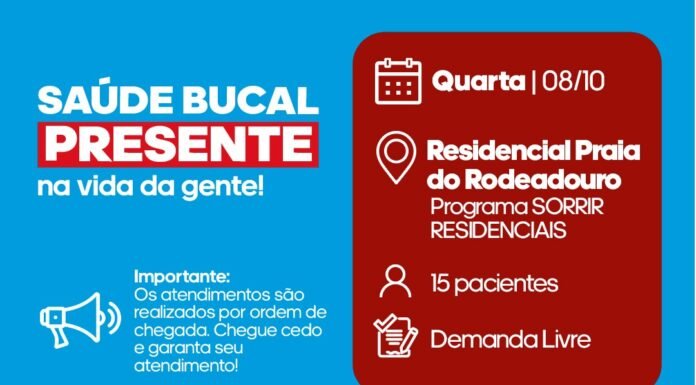 A Unidade de Atendimento Odontológico Móvel (UOM) segue levando serviços para a população. A iniciativa realizada pela Prefeitura de Juazeiro, por meio da Secretaria Municipal de Saúde (Sesau) está oferecendo, entre os dias 06 e 10 de outubro, 15 atendimentos diários a partir das 8h. É necessário que os pacientes apresentem RG, CPF e Cartão SUS.
